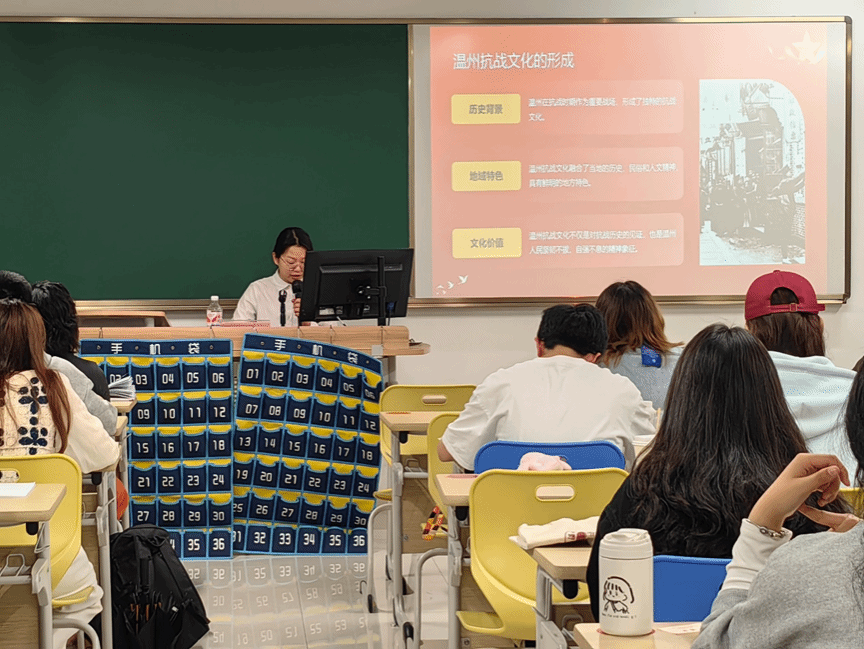 党建服务与人才培训中心于2024年4月19日晚18:30,在滨海校区2118教室开展了以“温州抗战文化及传播路径”为主题的高峰论坛活动。主讲人王聪颖以小切口见大道理,突出强调了温州抗战文化的特点和温州人民的抗争精神与爱国情怀,让同志们领悟到温州抗战文化的深远影响。