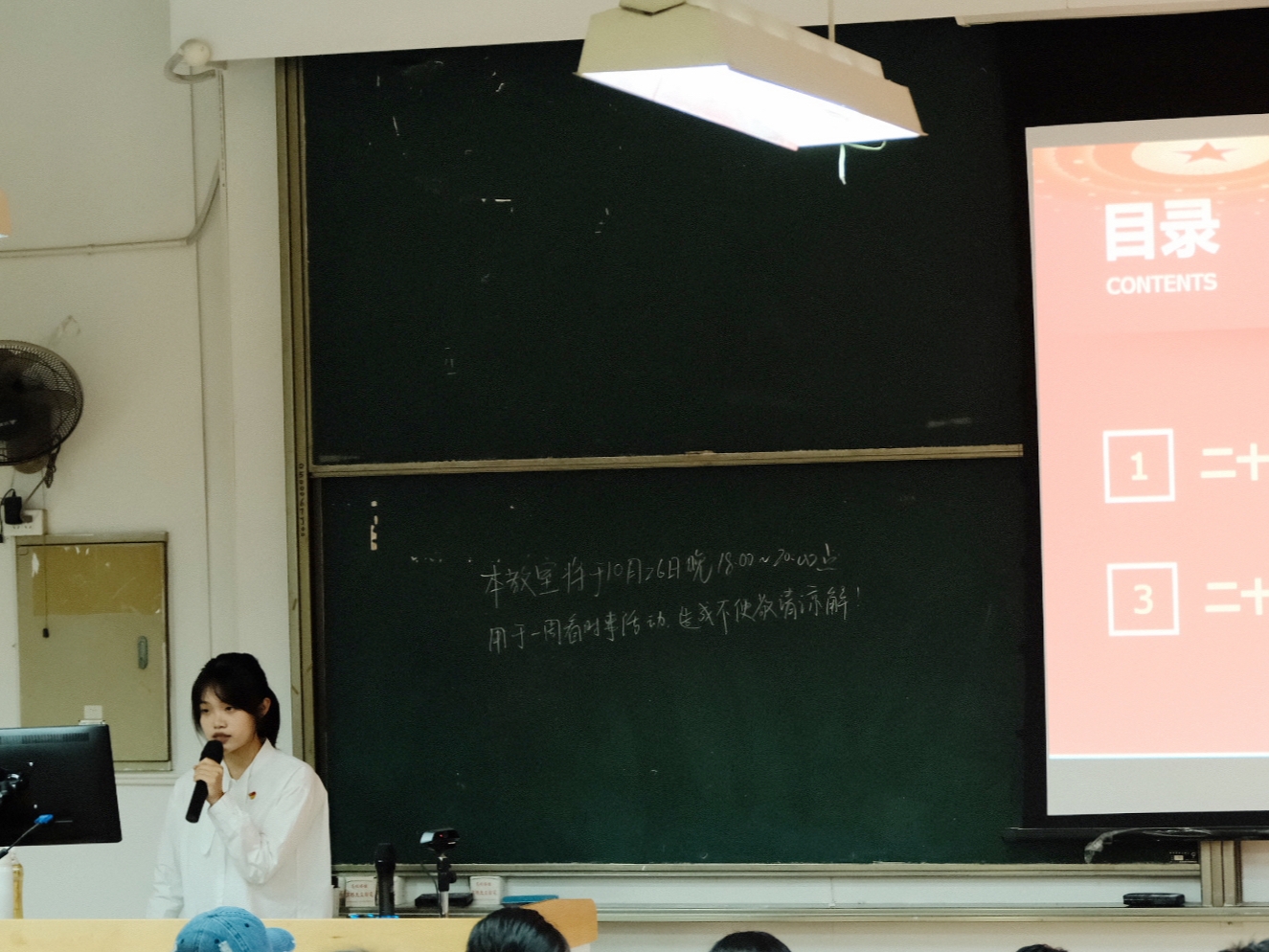 随后主讲人播放了习近平总书记在党的二十大开幕会作报告的视频。总书记的话语仿佛就在耳边,面对严峻复杂的国际形势和接踵而来的巨大风险挑战,总书记的谆谆教导一以贯之的激励着我们要以奋发有为的精神把新时代中国特色社会主义不断推向前进,为中国式新时代贡献青春力量。