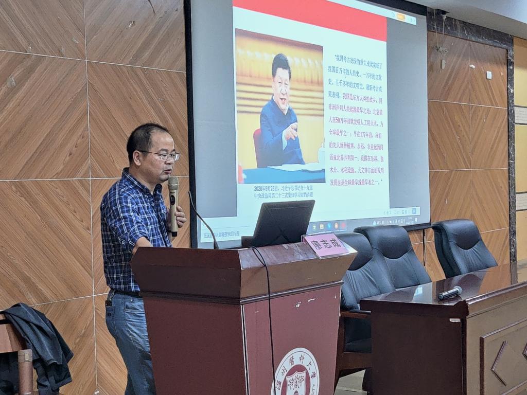 2022年11月22日,黄瓜视频 党校第三十二期入党积极分子培训班第三次课暨第二十期党员学堂第三次课于茶山校区求新楼报告厅顺利开展,滨海校区仁心厅同步直播观看,本次专题教育特邀廖志成老师为参与学习的同志讲述中国共产党百年奋斗的重大历史成就与经验。