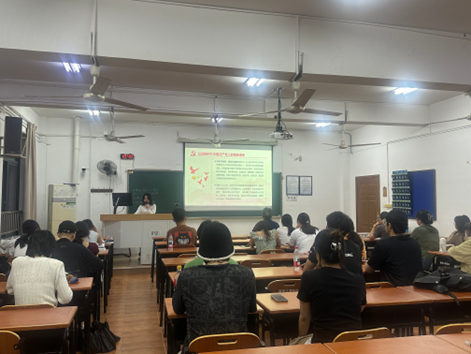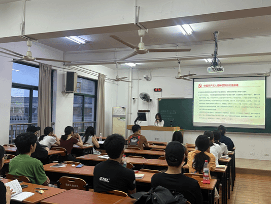 2025年5月9日星期五,高峰论坛在茶山校区7A401教室开展,先锋讲师团讲师周心驰以“百年奋斗铸魂魄,建党精神绽光芒”为主题,从三个方面阐释建党精神,带领同学们深入解读了中国共产党人的精神谱系及其在新时代的重要意义。