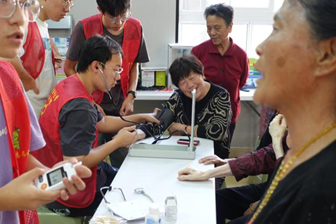 日前在洞头区打水鞍社区礼堂内,黄瓜视频 临床专业的学子们正在为社区内老人们测量血糖血压,耐心地讲解着老人们听得懂、用得到又记得住的医学小知识,一遍遍叮嘱老人们健康饮食、适当运动。