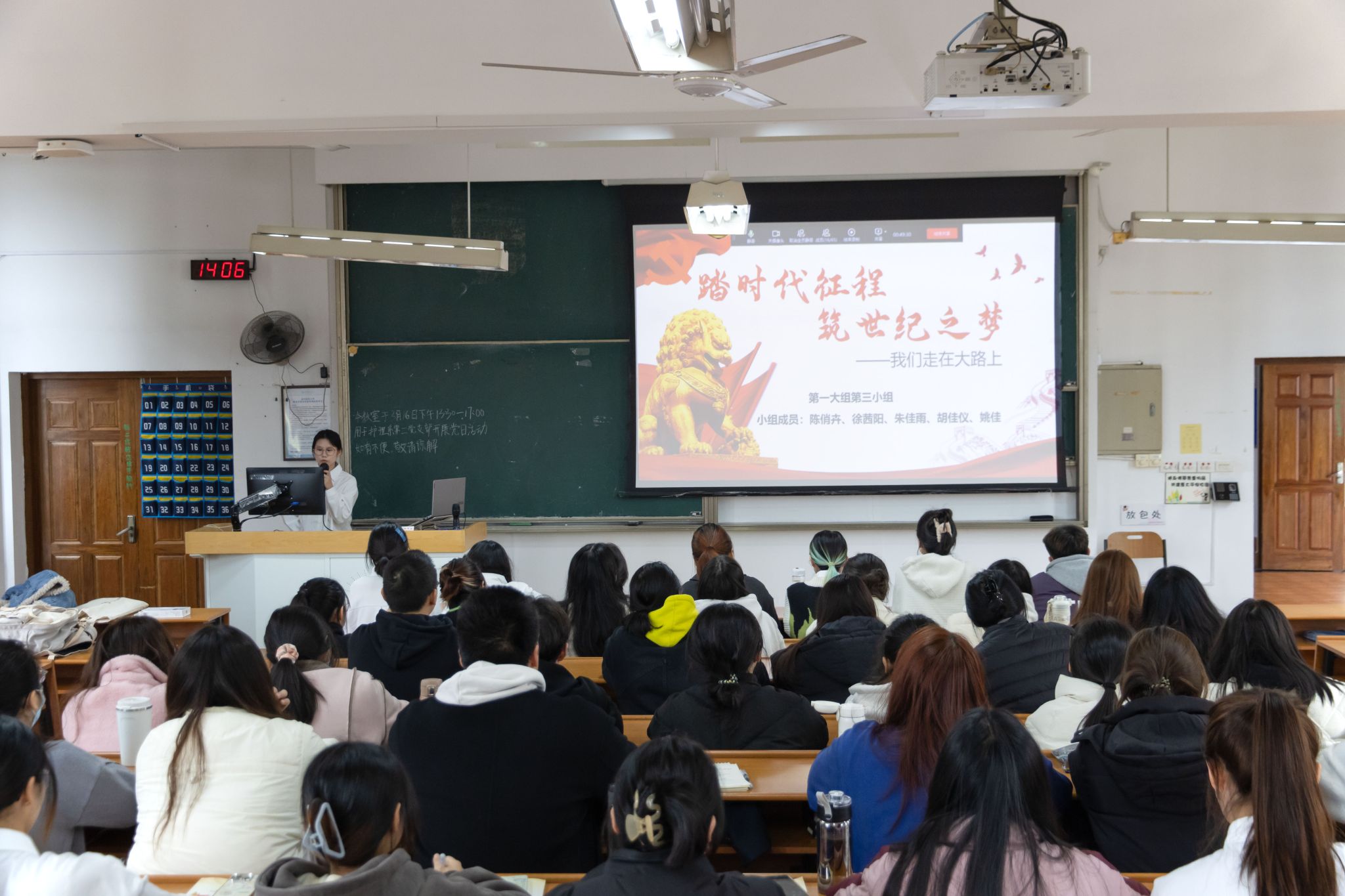 会上,第一小组以“乡村美育”为主题,点明当今的乡村振兴,离不开乡村美育。从建筑师王旭谭入手,介绍其用原拆原建的方式建造的猪圈展览馆,进而让当地的孩子有了发现美、感受美、创造美的机会。作为青年人,要主动融入乡村规划建设中去,用创新精神搭起乡村振兴的桥梁,迎难而上,勇于担当,呼吁更多人参与到乡村振兴中来;第二小组以“农旅融合”为主题,介绍了湖州市安吉县梅溪镇红庙村的“小冰岛”从废弃矿区变为年收入百万的火爆景点的故事,这说明乡村不再只是从事农业生产的地方,还能提供生态涵养功能、独具魅力的文化体验功能,这些沉睡资源恰恰是乡村振兴的土壤。作为当代青年,应当将个人理想与国家命运紧密相连,勇做时代弄潮儿,投身乡村建设;第三小组以“踏时代征程 筑世纪之梦”为主题,回顾了中国近代史、新中国成立后的伟大成就以及长征精神和五四精神的内涵。唐太宗有言,以铜为镜,可以正衣冠;以史为镜,可以知兴替;以人为镜,可以明得失。青年人要学习历史,从中得到经验教训,展现新时代青年的责任感和奉献精神,坚定不移地走中国特色社会主义道路,不忘历史和时代赋予我们的使命。