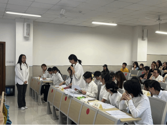 随后,进入观众提问及评委点评。观众针对各国代表的发言进行提问各位辩手就代表国发展情况踊跃回答。评委梅慧杰同志点评道:各位选手准备充分,但仍有改进空间,这次的活动不仅锻炼了我们的临场反应能力,还引发了我们对于护理行业的进一步思考。