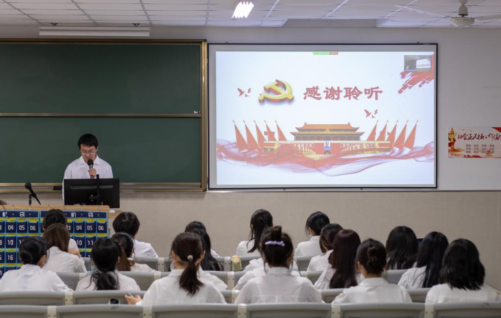 会议开始之前,主持人强调了本次会议纪律,第一项议程全体起立、奏唱国歌,随后会议正式开始。首先,主持人将支部情况做了简要概述,之后详细讲述了入党的具体流程,对积极分子下一步发展提出了明确的要求,希望各位积极分子端正态度,明确自己的入党动机,在今后的发展中积极地面对党支部的考核。