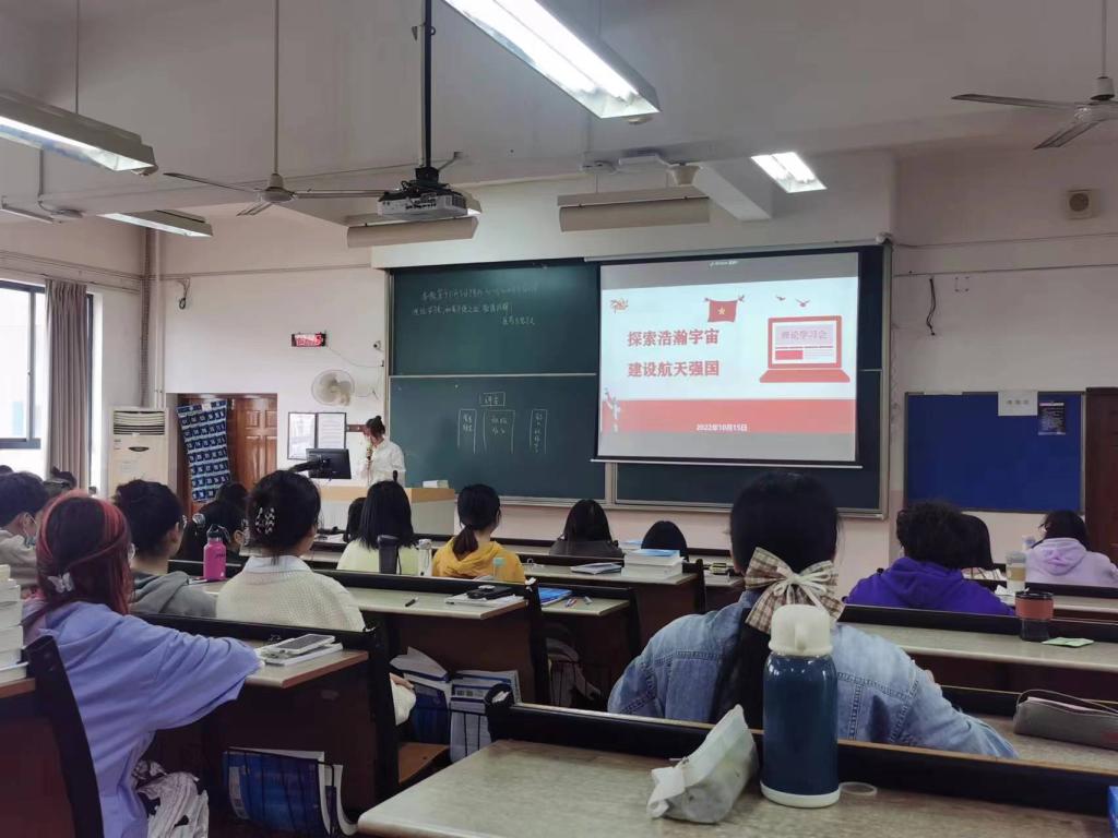 2022年11月5日下午13:30,黄瓜视频 医学技术与药学系党支部于滨海校区2211和茶山校区6A307教室举行本学期第三次理论学习会,本次学习会的主题是:“探索浩瀚宇宙,建设航天强国”。