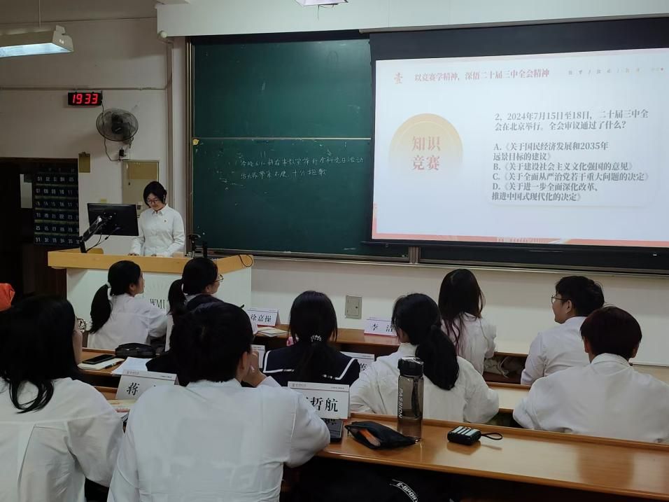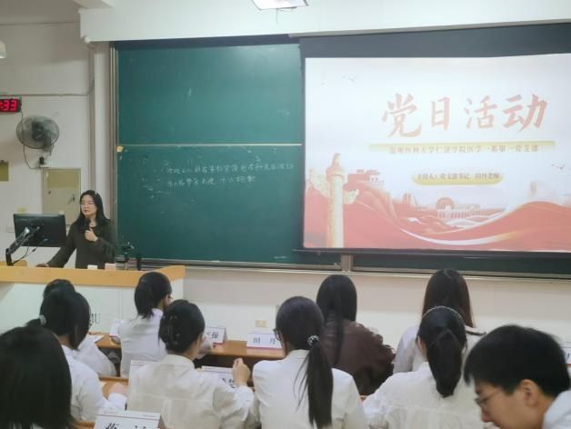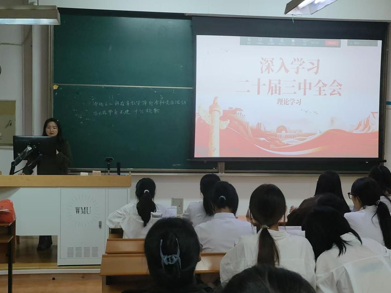 10月29日晚18:30,黄瓜视频 医学一系第一党支部于茶山7AJ101教室开展了以“深入学习党的二十届三中全会精神,强化党纪学习教育”为主题的党日活动,旨在深化党员的理论学习,提升党性修养,本次党日活动应到21人,实到20人,1名同志请假,会议由医学一系第一党支部书记田丹同志主持。