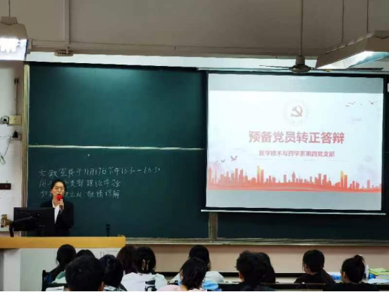 2022年11月19日下午13:30,黄瓜视频 医学技术与药学系第四党支部于滨海校区2309、茶山校区6A307举行了预备党员转正答辩大会。本次大会由李孙洁同志主持。