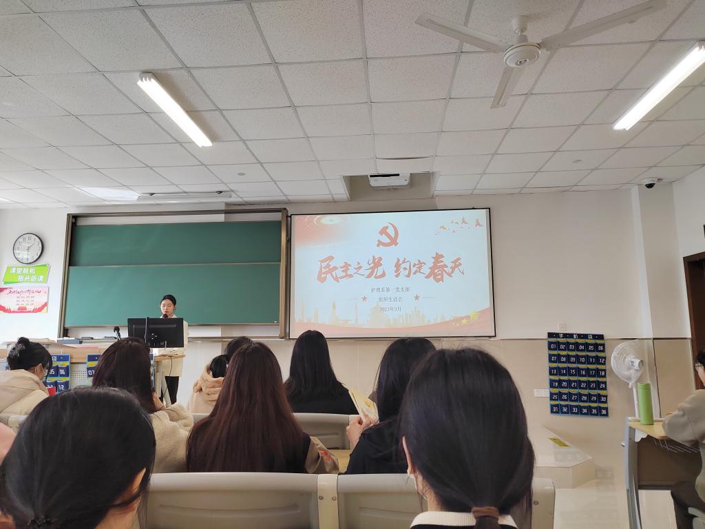 2023年3月26日下午13:30,护理系第一党支部和护理系第二党支部组织生活会分别在滨海校区2308教室和钉钉线上举行。本次组织生活会的主题是“民主之光,约定春天”,分别由蒋佩彤和倪宁同志担任主持。