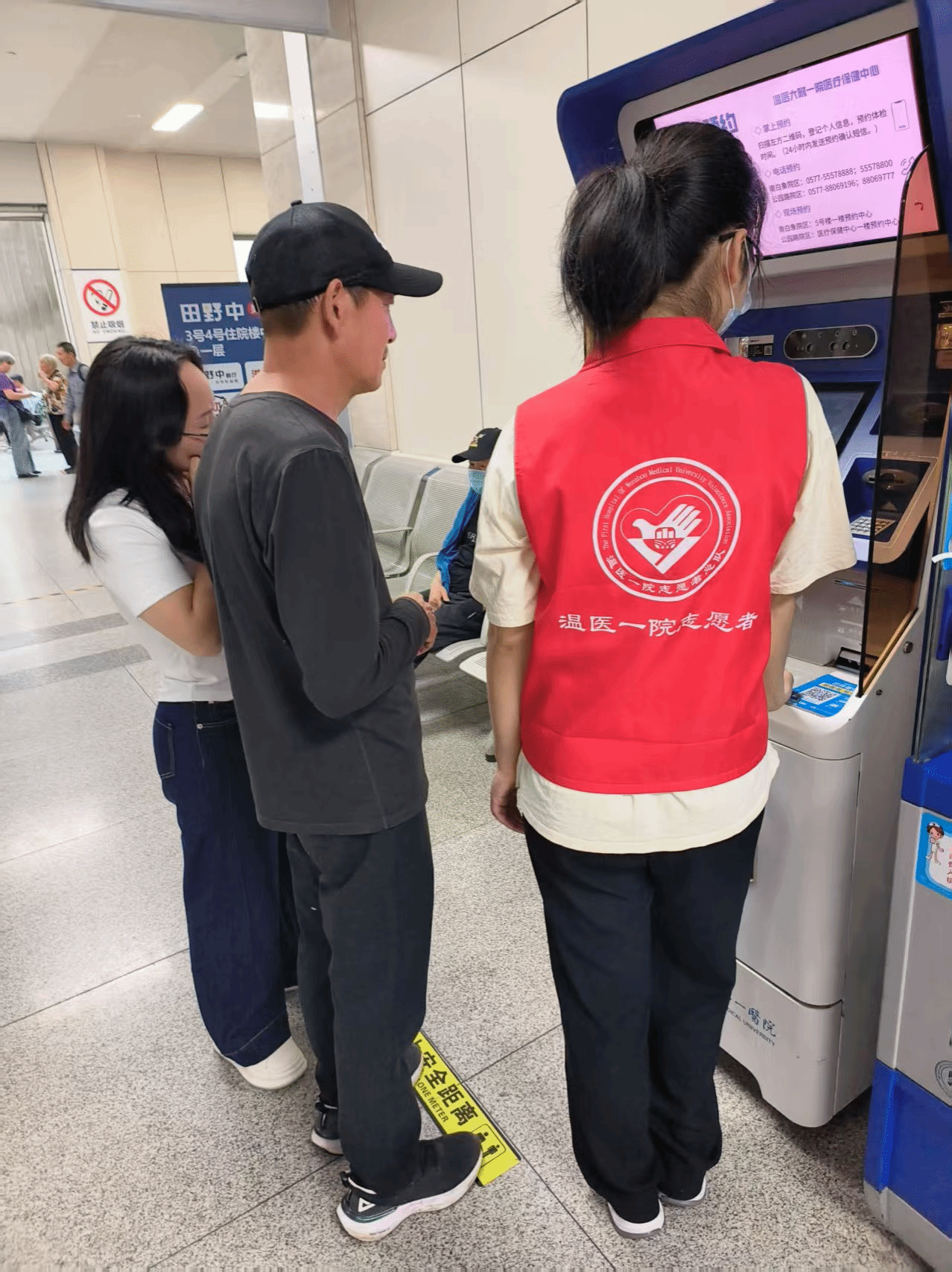 面对患者焦急的眼神和疑惑的询问,志愿者们始终面带微笑,耐心解答病情咨询,细致入微地指导挂号流程,手把手帮助患者完成检查预约等自助机操作。他们用专业与耐心,为患者驱散就医过程中的迷茫与不安,搭建起一条顺畅的就医通道,让原本繁琐的就医流程变得便捷高效。