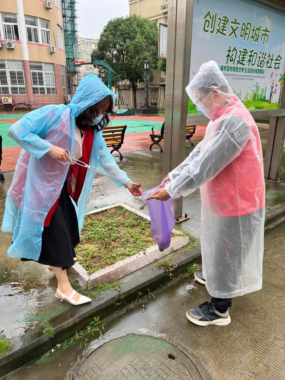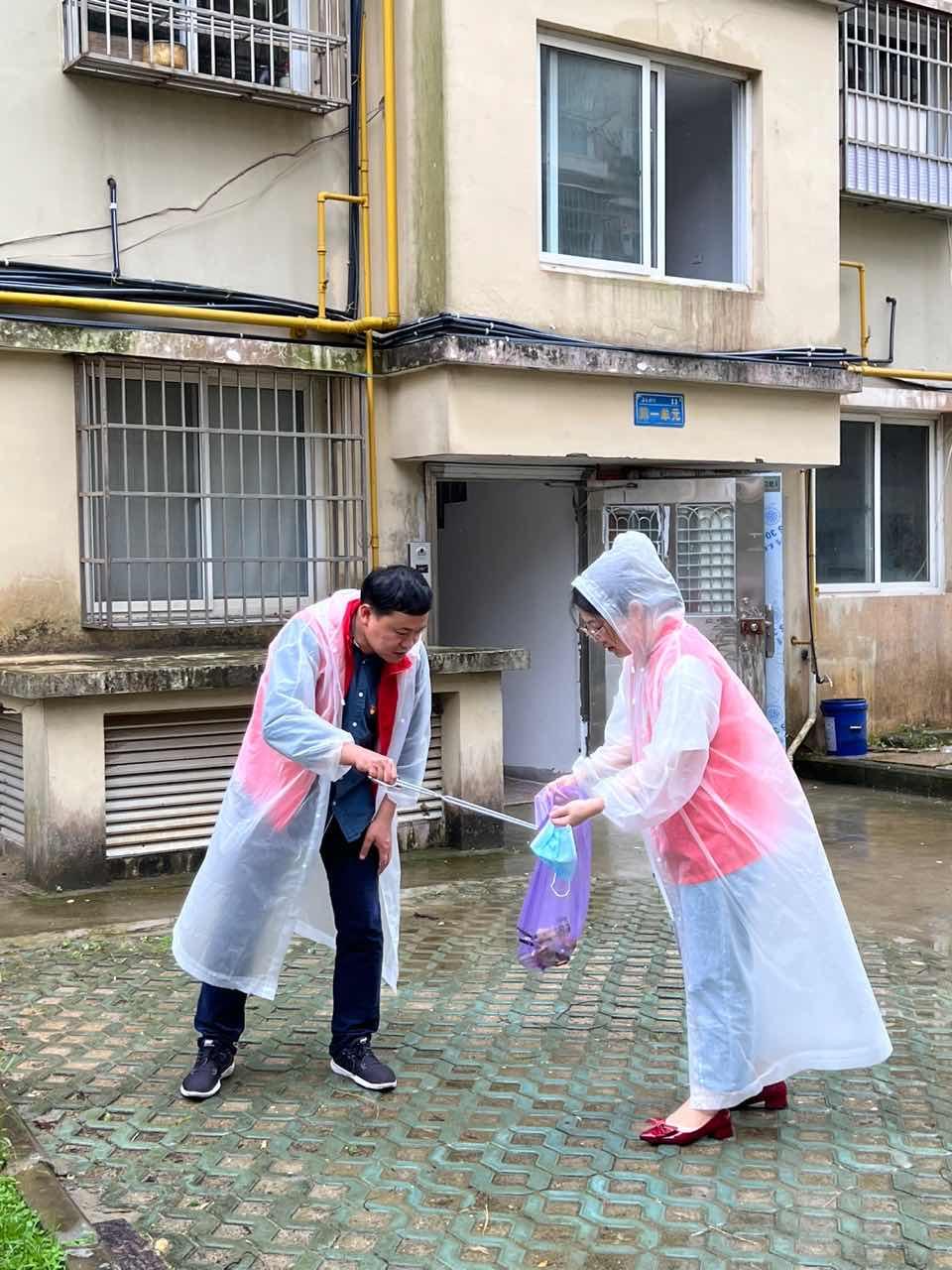 暴雨没有影响各位支部党员如期进行活动的决心。支部的党员志愿者们身穿红马甲,披上雨衣,以饱满的热情和积极的做事态度投身到文明治理活动中来,对洞头区打水庵社区服务中心所在的小区及其周边街道的卫生情况进行详细的查看。党员志愿者们对小区里公共走廊的窗台上的陈年垃圾进行清理,对小区花坛里的烟头进行清理,并与洞头区教育局的党员同志们进行充分的交流,共同致力于引导社区群众树立良好的卫生意识,共同营造干净整洁的社区环境。