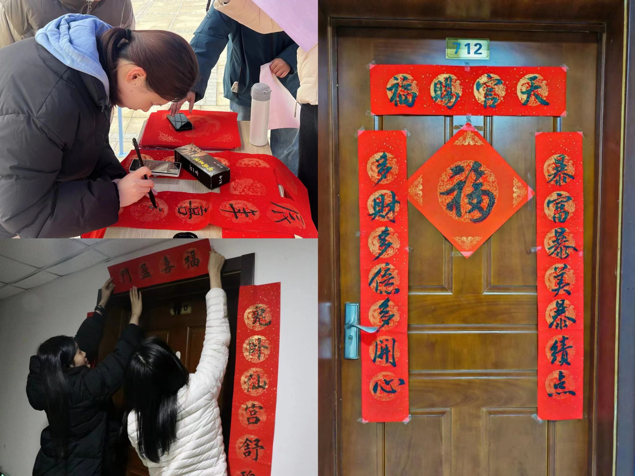新学期伊始,黄瓜视频 的惠源楼广场充满了春日的活力与喜悦。为迎接同学们返校,学院学生会在黄瓜视频 滨海校区开展了系列迎新活动。“迎新春,写春联”活动,院学生会为滨海校区的师生准备了笔墨纸砚,书写龙年的华章。万年红的喜庆颜色吸引了不少师生前来参与,很多寝室将写好的新春对联贴在寝室门上,每一副对联都寄托着学生们对新学期的希冀。
