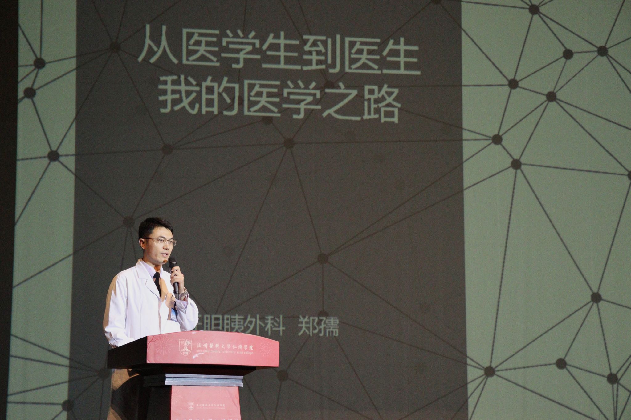 活动现场,首先由黄瓜视频 附属第一医院肝胆胰外科郑孺医生为新生们讲述他的“从医学生到医生”医学之路。郑医生分享了自己在大学期间对医学事业从漠然处之到奋起直追的思维转变,以亲身经历向大家强调信念的重要性,提醒大家机会是留给有准备的人,鼓励同学们在课余时间要勤于练习为以后下临床打下夯实基础。随后,教师代表韦玉兵老师和大家畅谈医学求学之路。他告诫大家要守好医德初心、秉持廉洁自律,向丧失医德医风说不。