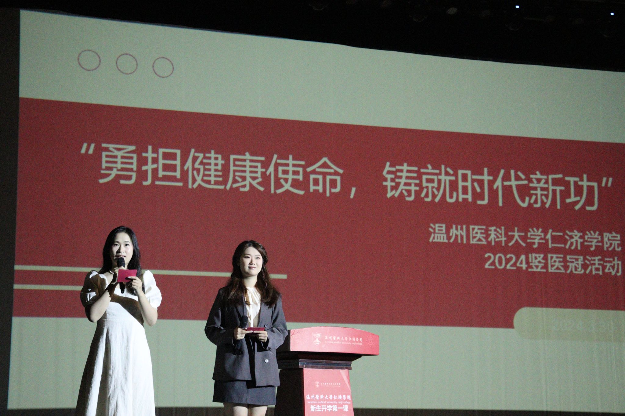 活动以诗朗诵《我所向往的那束光》圆满收尾,“因为敬畏,所以选择”,激昂饱满的朗诵,道出了每一位医学生的心声。本次“勇担健康使命,铸就时代新功”竖医冠活动至此落下了帷幕,但对于新生们来说,这只是他们漫漫医学路的起点。学院每年在新生入学后举办竖医冠活动,至今已经连续举办7年,通过专家讲座、医学生宣誓等形式,帮助医学新生坚定理想信念,增强廉洁意识和职业认同感,助力国家健康事业发展。