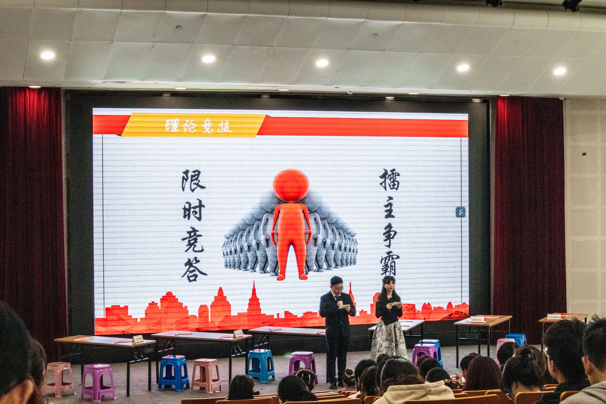 擂主争霸环节更是扣人心弦。根据前轮成绩,选手们依次登上擂台,展开五轮激烈角逐。每一题都关乎荣誉,每一分都至关重要,场上比分紧咬,擂主之位不断更迭,展现出了选手们前期充分的准备和丰富的理论知识储备。