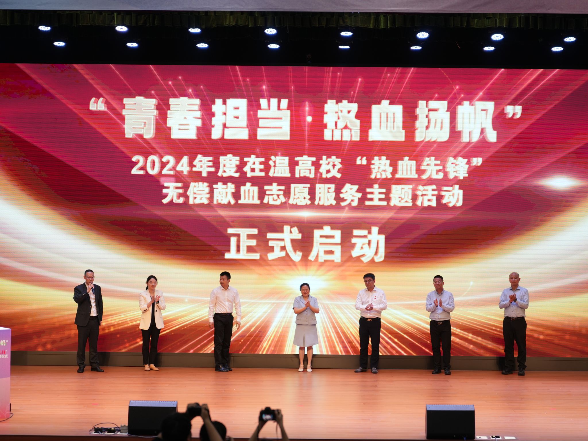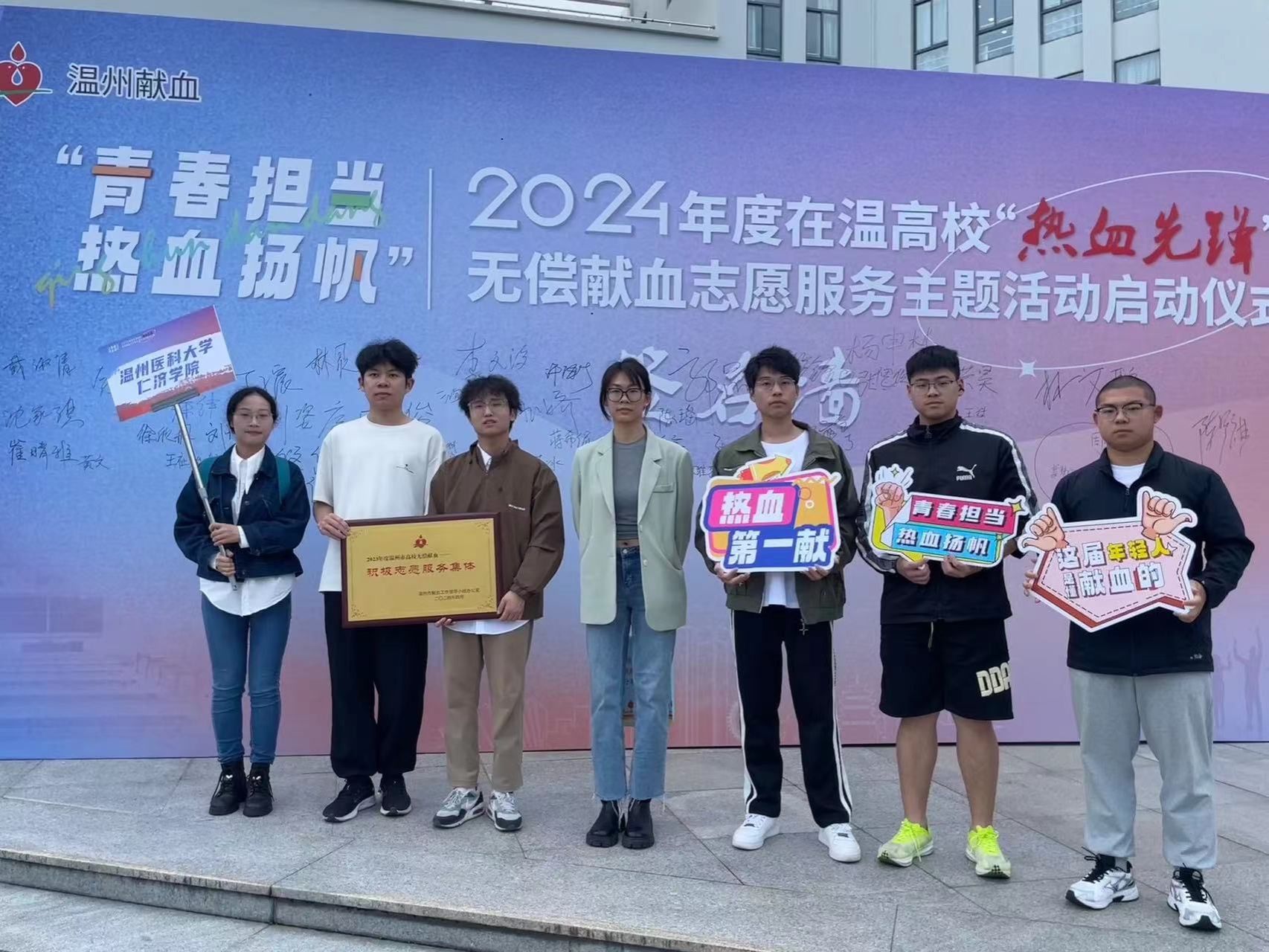 近日,我院受邀参加2024年度在温高校“热血先锋”无偿献血志愿服务主题活动启动仪式。我院春晖青年志愿者服务中心被评为2023年度温州市高校“无偿献血积极志愿服务集体”荣誉称号。崔晴雅荣获2023年度温州市高校“无偿献血爱心组织者”称号,陈明意、陈伊敏等18位同学因在校期间献血超过1000毫升荣获2023年度“高校热血先锋”称号。他们以极大的热情投身于无偿献血志愿服务工作,生动诠释了“奉献、友爱、互助、进步”的志愿服务精神内涵。