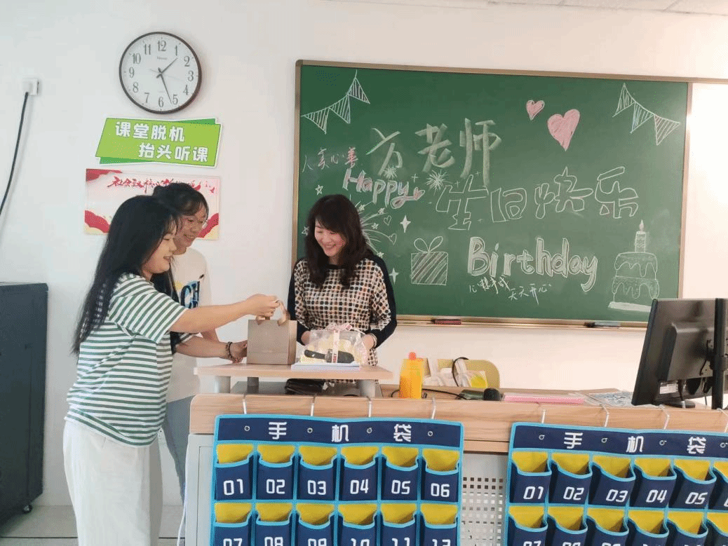 当方老师走进教室的那一刻,她被眼前的景象深深打动。“生日快乐,方老师!HAPPY BIRTHDAY”的声音响起,她眼眶微湿,笑容中透露出深深的感动。随后同学们给方老师送上了精心准备的小礼物表达她们的感激之情。