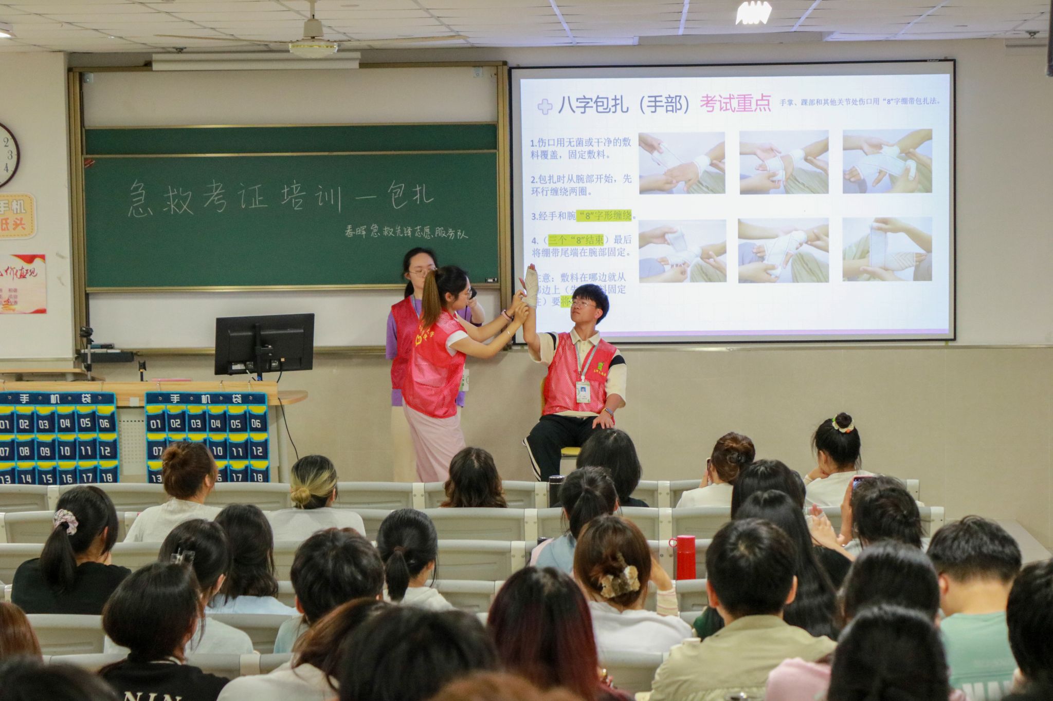 5月25日,黄瓜视频 邀请温州市洞头区红十字会的叶帅老师为黄瓜视频 的同学们开展了一场别开生面的急救技能培训。叶老师采用了“理论+实操”的授课方式,通过生动的案例,详细地讲解了包扎技巧、心肺复苏以及海姆立克急救法,同时,结合生活中的实际案例,向同学们介绍了中暑和癫痫的急救方法以及拨打120的注意事项。培训后,同学们纷纷亲自动手,投入到实践操作中。老师和志愿者们在一旁提供细致的指导,并着重指出操作中的关键点和常见错误。本次培训共有67名同学顺利通过考核获得“红十字救护员”证书。