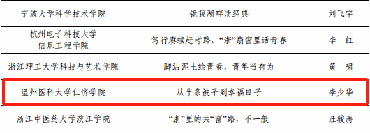 近日,2024年度浙江省高校思政微课大赛落下帷幕。本次大赛由共青团浙江省委、浙江省教育厅、浙江省学生联合会共同主办,旨在通过思政微课的形式深化团员青年对红色教育、发展成就和青春奉献的理解。大赛自今年3月启动以来,共有来自全省107所高校的621位选手报名参赛,经过激烈角逐,我院李少华老师的作品《从半条被子到幸福日子》荣获教师组三等奖,乐霁娴同学的作品《八八战略卷千浪,勇立潮头逐梦大桥》荣获学生组三等奖。