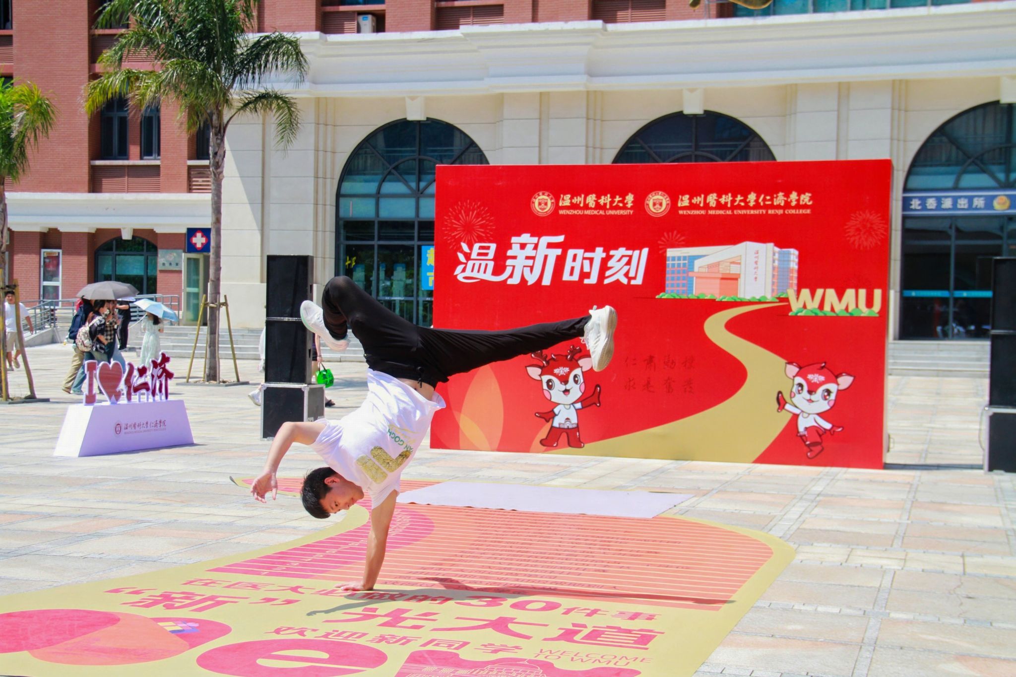 在惠源楼广场上,学院艺术团为小萌新准备了特别迎新表演,乐队主唱那悠扬动人的歌声以及街舞队活力四射的舞蹈,充分展现了2023级学长学姐们的迎新热情,让初来乍到的萌新们感受到了仁济校园洋溢着的青春活力与无限魅力。