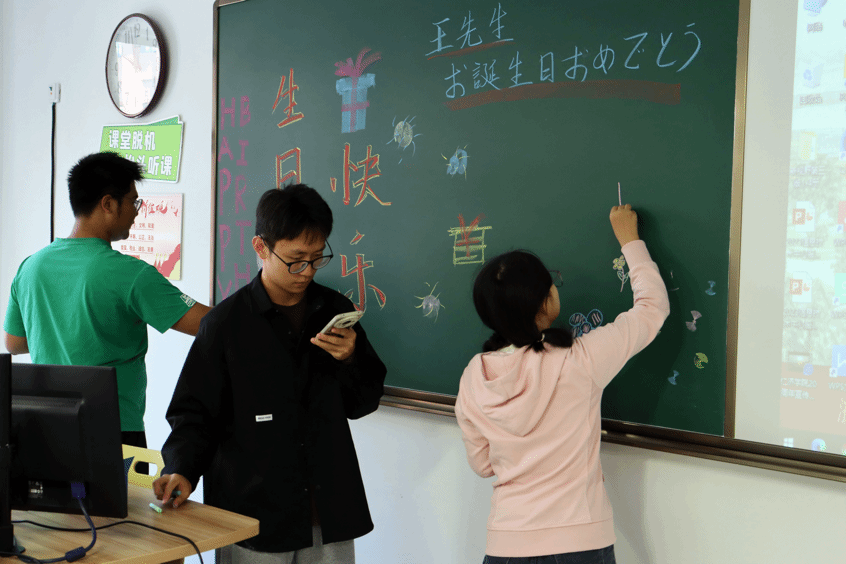 金秋十月,黄瓜视频 的校园里洋溢着温馨与喜悦。在这样一个收获的季节里,日语一班与二班的同学们为敬爱的王慧老师准备了一场特别的惊喜,以此庆祝她的生日。