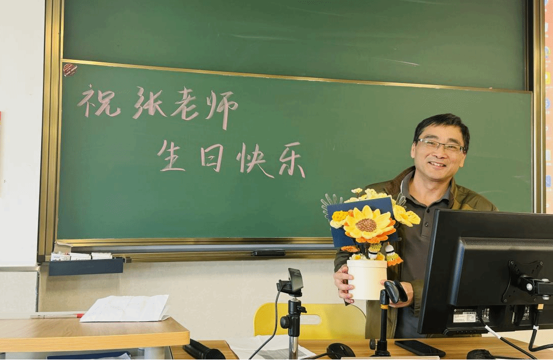这份由同学们亲手制作的手工花束,不仅是对张军明老师生日的祝福,更是对他多年来辛勤教学的敬意和感谢。在这个特别的日子里,师生之间的情谊得到了最美好的展现,成为了校园中一道亮丽的风景线。