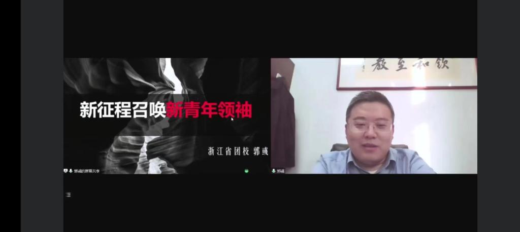 最后,浙江省团校副校长郭彧老师,以幽默的口吻、平实的语言带来了引人深省、振奋人心的发言《新时代召唤新青年领袖》。他指出建党历史上道路选择错误的人,阐述了坚定不移走正确道路的重要性;时代发展日新月异,人民生活水平不断提高,每一代人从时代前端走来,都要接受大众的质疑。郭老师否定了这些对于“X0”后固定标签的刻板看法,认为每一代的“问题”是时代发展必然带来的,也必然会随时代发展被这辈人解决。自古英雄出少年。从革命的一代、建设的一代、改革的一代,到如今强国的一代,中国也实现了从“站起来”“富起来”到“强起来”的飞跃。做无畏、无私、无妨、无限可能的新青年,去改变教条、去挑战一成不变,忠于自己,也关怀社会,带着新时代独有的平等、包容和适应,去拥抱时代,这便是新青年的成长之道。