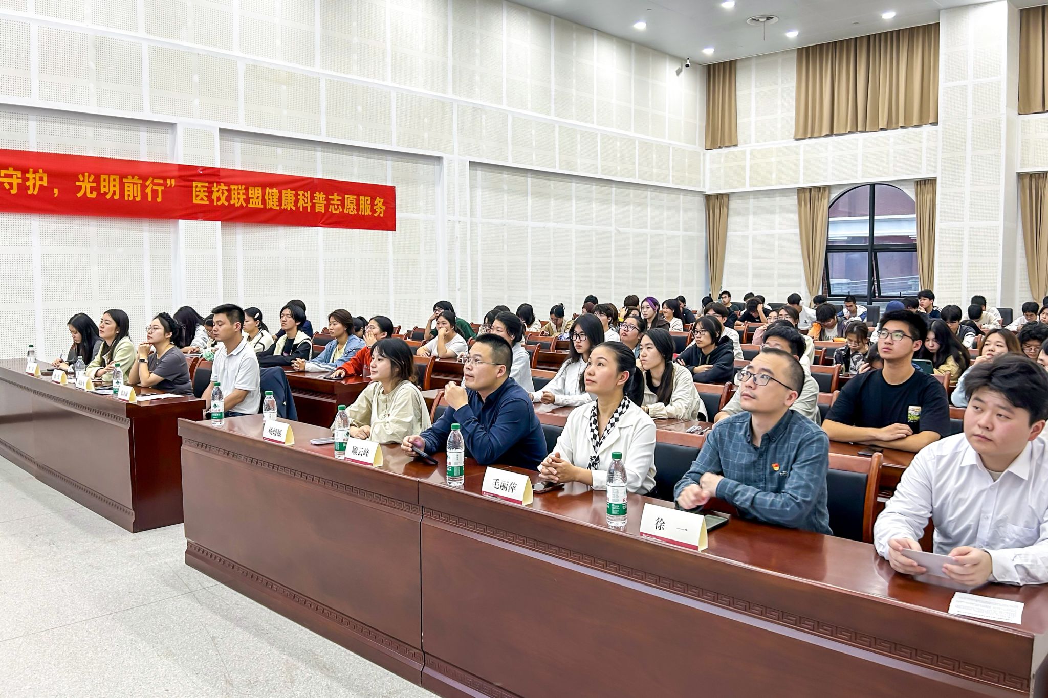 为积极响应国家关于加强公共卫生服务体系建设的号召,提升大学生眼健康认知,培养眼科医疗人才,2024年11月14日下午16时,我院与温医大附属眼视光医院在滨海校区博学厅共同启动了“医起守护,光明前行”医校联盟健康科普志愿服务基地项目。学院党委副书记张立康出席并讲话,温医大眼视光医院检验病理中心主任郑美琴、学院团委副书记项珍飞及师生代表100余人参加活动。
