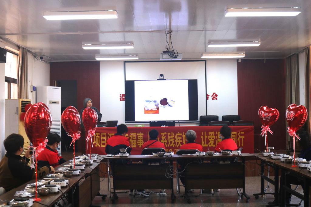 3月8日上午,志愿者们来到了洞头区残疾人联合会的活动室中心,在场来自各个街道的20余名佳人,以及辖区内8位特殊儿童还有他们的家长共同参与此次活动。