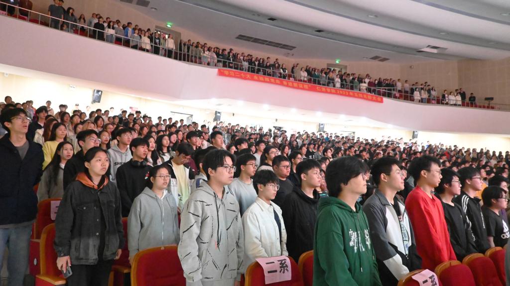 雄壮的国歌后,党委书记陈乃车发表致辞,他高度肯定了过去一年学院在推进思想育人工程、搭建实践育人平台、打造文化育人品牌、完善服务育人体系等方面取得的显著成绩,向青年朋友致以节日的问候和祝愿,并提出了三点期望:坚定理想信念,做有志青年;锤炼过硬本领,做有识青年;敢于突破自我,做有为青年。同时强调,当代中国青年是与新时代同向同行、共同前进的一代,生逢盛世,肩负重任,要深入细致地学习习近平新时代中国特色社会主义思想,深刻领悟思想伟力,要努力掌握真才实学,练就过硬本领,使自己的思维眼界、知识水平、实践能力跟上不断更新的时代需要,要结合各自的专业,学习各种新知识,坚持敢为人先,勇于探索,善于创新,不断攻克新的难关,做到坚定不移听党话、跟党走,努力成长为堪当民族复兴重任的时代新人。