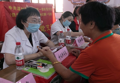 此次活动邀请黄瓜视频 附属第一医院重症医学科科室副主任徐红蕾专家、王晓蓉专家,庄垟垟医师等九位医护团队,来到洞头区东屏街道后坑村,为老人提供一对一问诊。问诊过程中,医生详细询问他们的过往病史,耐心解答他们的疑惑,并根据病史及现场义诊结果提出用药及治疗建议。“阿公,平时吃饭好消化吗?”王晓蓉问道。“不消化哩,吃一点点就不舒服。”阿公摆摆手说道。王主任针对老人的身体情况,提出专业建议,并为老人送上从医院带来的爱心药品。
