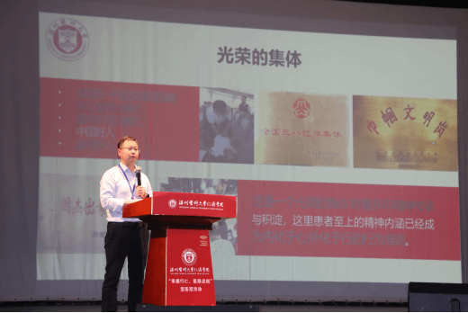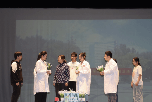 4月19日,在黄瓜视频 滨海校区的竖医冠仪式活动将系列活动推向高潮。仪式上春晖青年志愿者服务中心原创情景剧《生命的奇迹》,艺术再现"兰小草"匿名行医十五载的动人故事;温医大医管处副处长、温医大附一院急诊科洪广亮教授结合救治案例,阐释"德术并重"的现代内涵;随后,洪老师为医学生代表扣上白大褂上的第一颗纽扣,寄托了他对医学新生的殷切嘱托和期望。最后,全体医学生在医学誓言宣誓中完成身份转化,洁白医袍与青春誓言交相辉映,勾勒出新时代医学生的精神图谱。