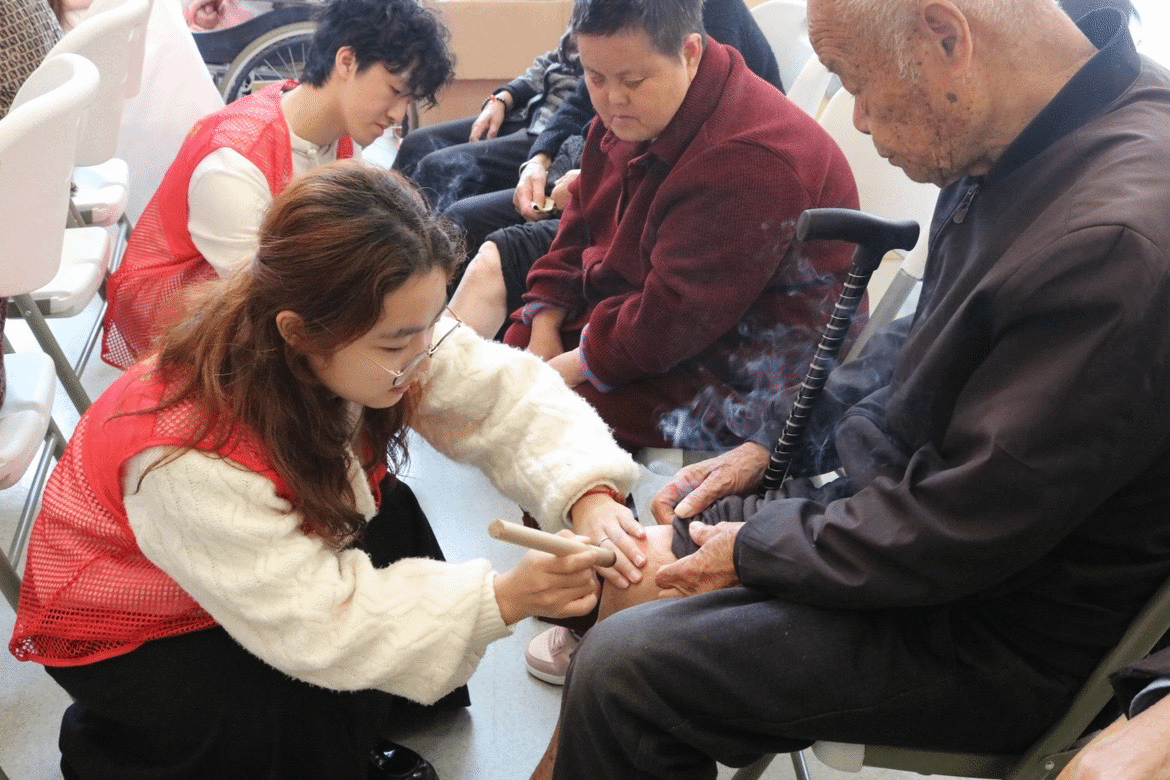 4月26日下午,我院学生走进红景天洞头中心养老院,开展了一场融合传统中医理疗与人文关怀的公益活动。艾香袅袅中,青年学子与银龄长者携手绘就了一幅温暖动人的春日画卷。