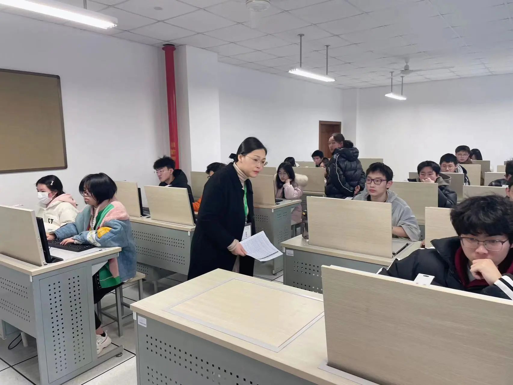 巡考过程中,学院领导认真查看了考场环境、考试组织、考场秩序、监考教师职责履行、学生考试纪律等情况,并与部分监考教师就考试情况进行沟通了解,对巡考工作及加强考风学风建设提出了指导建议。从整体巡考情况看,学院期末考试工作准备充分、管理规范、秩序井然,学生认真答题,严格遵守考试纪律,监考教师认真履行监考职责,考场环境干净整洁,展现了良好的学风考风。