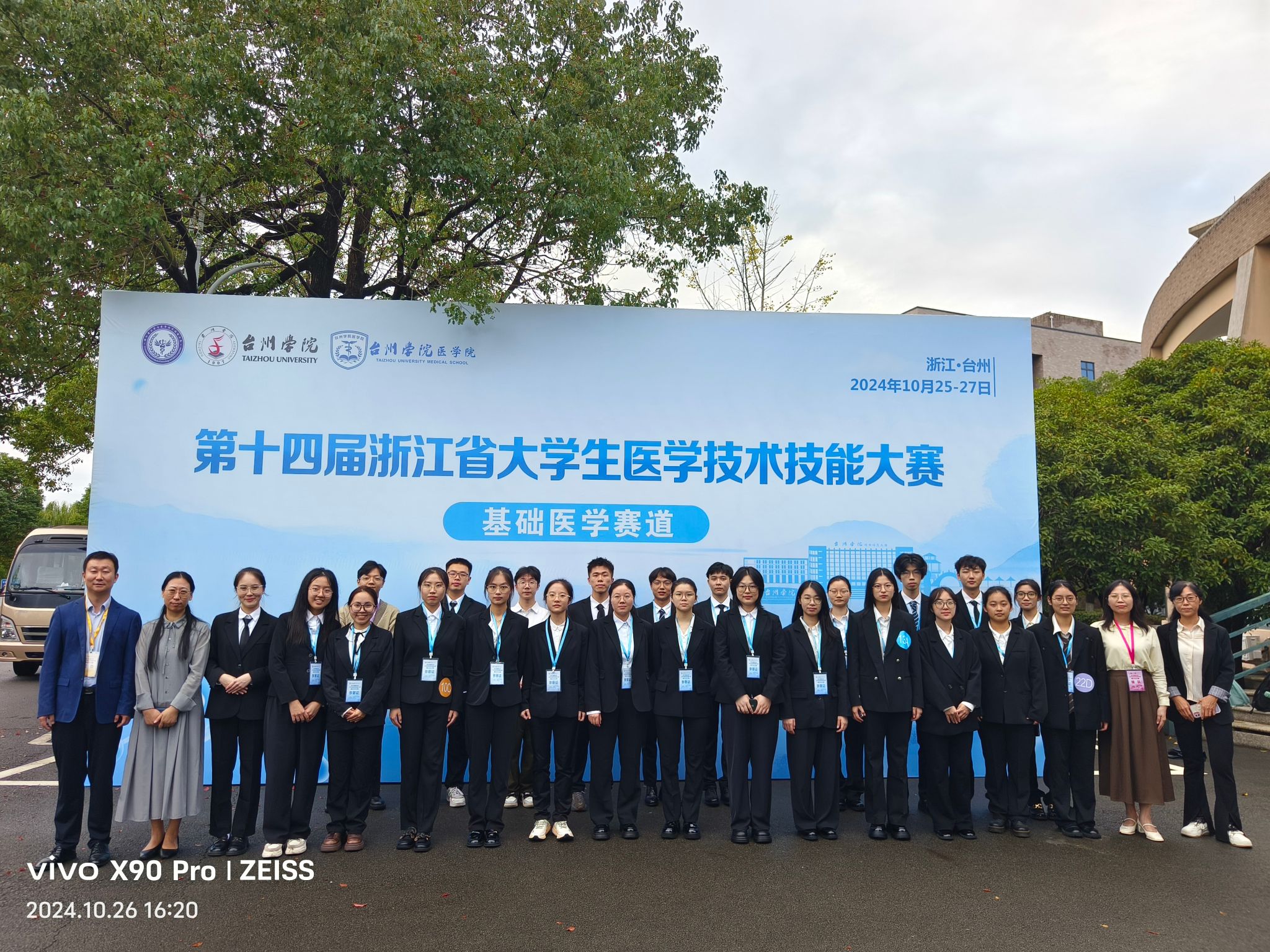 10月25日-10月26日,第十四届浙江省大学生医学技术技能大赛基础医学赛道决赛在台州学院顺利举行。来自省内12所高校33支队伍共146名队员参加了比赛。经过两天紧张激烈地角逐,我院参赛选手获银奖1项、铜奖1项。