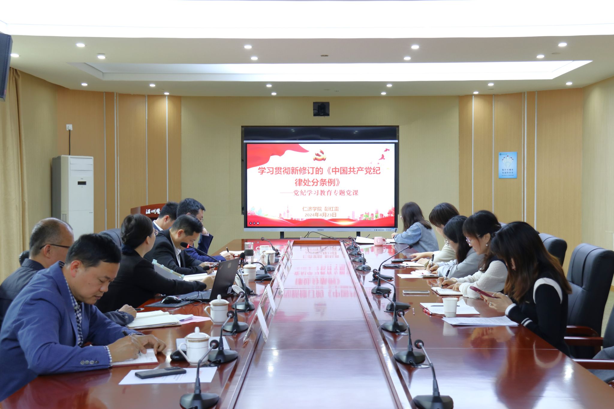 为切实推进我院党纪学习教育走深走实,进一步教育引导党员干部学纪、知纪、明纪、守纪。4月23日上午,学院召开党委理论学习中心组(扩大)学习会议,党委书记彭红雷围绕新修订的《中国共产党纪律处分条例》作专题党课。党委理论学习中心组成员、各职能部门负责人参加学习会。