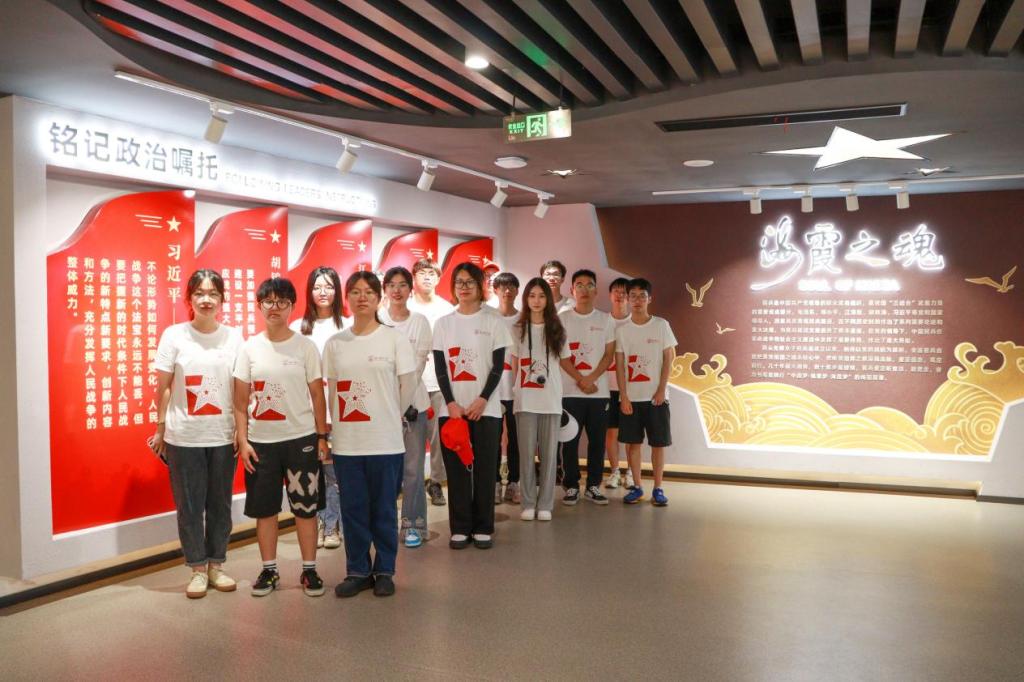 在民兵连纪念馆,实践队瞻仰了民兵连前辈们的雕像,被“巾帼不让须眉”的女子英雄气概所折服,深刻感受了女子民兵连始终听党话、跟党走,向祖国交出无愧于历史的时代答卷的责任担当,沉浸式学习了“海霞”们“爱军尚武、吃苦耐劳、乐于奉献、永葆本色”的崇高精神。参观完民兵连纪念馆,接受海霞精神的精神洗礼后,实践队员们立即投入到海霞精神的弘扬、宣讲之中。全体实践队员化身“海霞精神线上宣讲员”,从医学生的角度对新时代海霞精神进行新的讲述、新的传承。面对鲜红的党旗,实践队员们用行动表明自己牢记总书记嘱托、勇担时代使命、弘扬海霞精神、践行“医者仁心”的决心和意志。