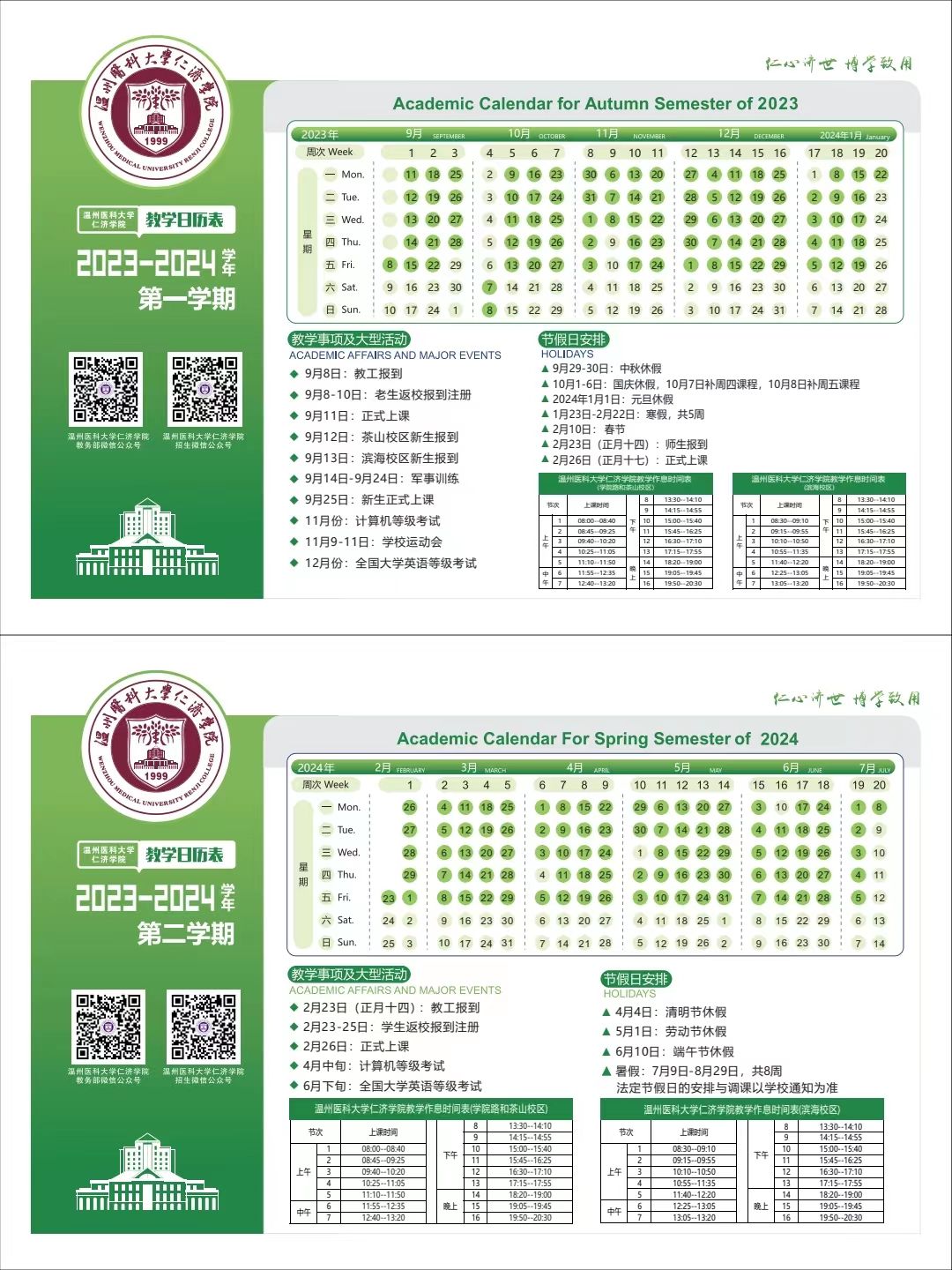 黄瓜视频 2023-2024学年第一学期和第二学期教学日历表