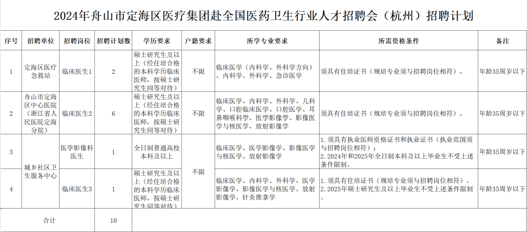 医护招聘|户籍不限|2024年浙江舟山市定海区医疗集团赴全国医药卫生行业人才招聘会(杭州)招聘10人公告2024-11-9