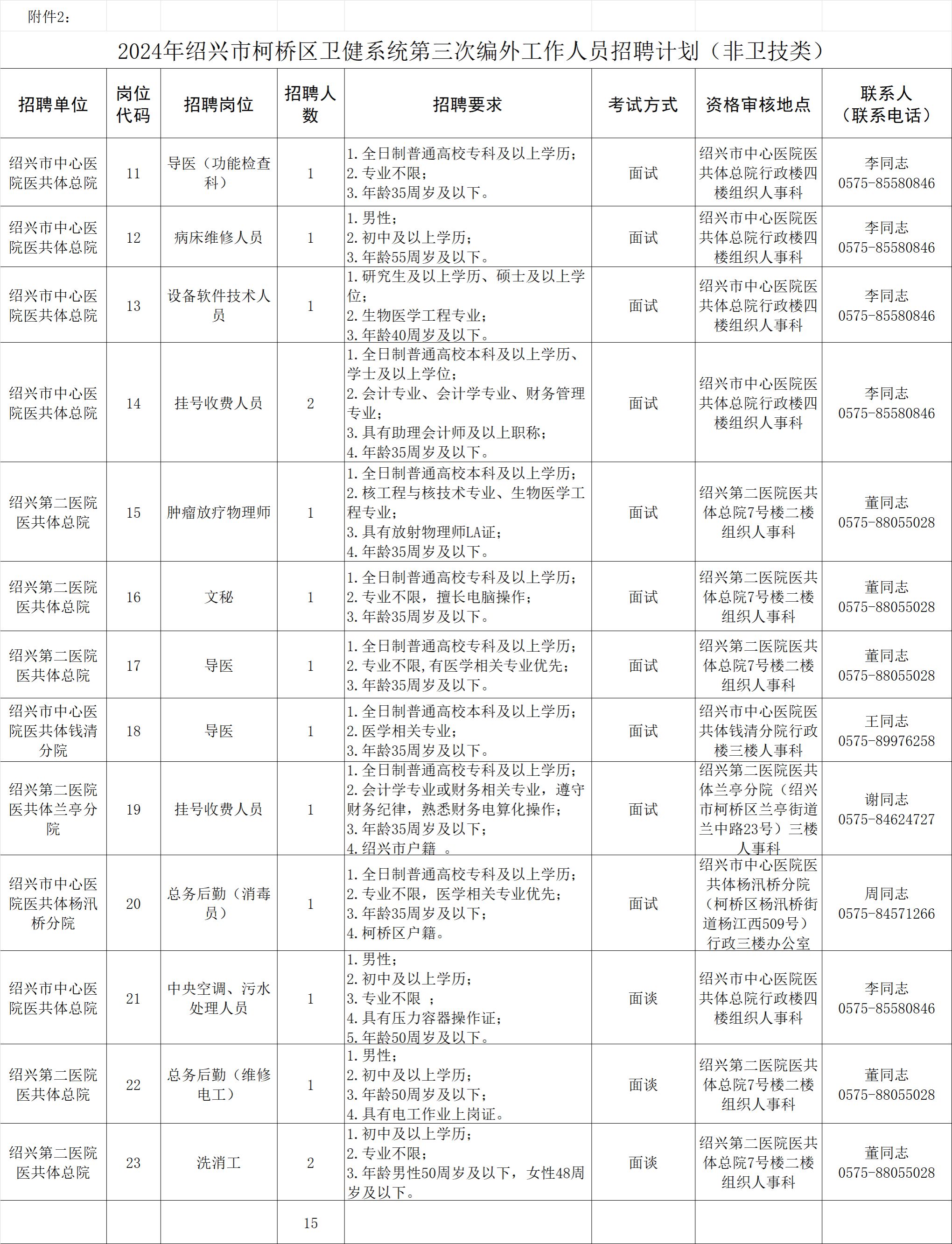 柯桥区部分卫生健康单位计划招聘工作人员53名(23个招聘职位)。(其中卫技类工作人员38名,非卫技类工作人员15名)