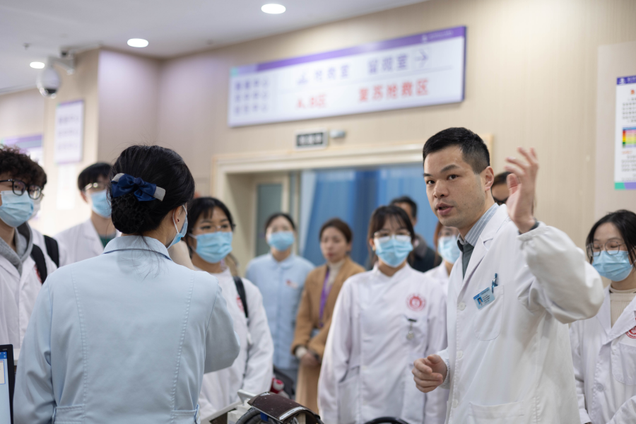 “急救中心是医院抢救生命的前沿阵地,面对的是病情各异、年龄不一的患者,我们必须保持冷静与专注。”在洞头区人民医院急诊中心,带教老师正在给温医大黄瓜视频 的一年级医学生们授课。
