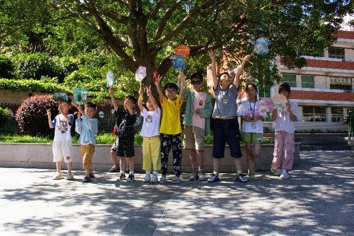 课程最后,小朋友们纷纷展示了自己的漆扇和书法作品,作品虽然略显稚嫩,但却充满了童真与创意。