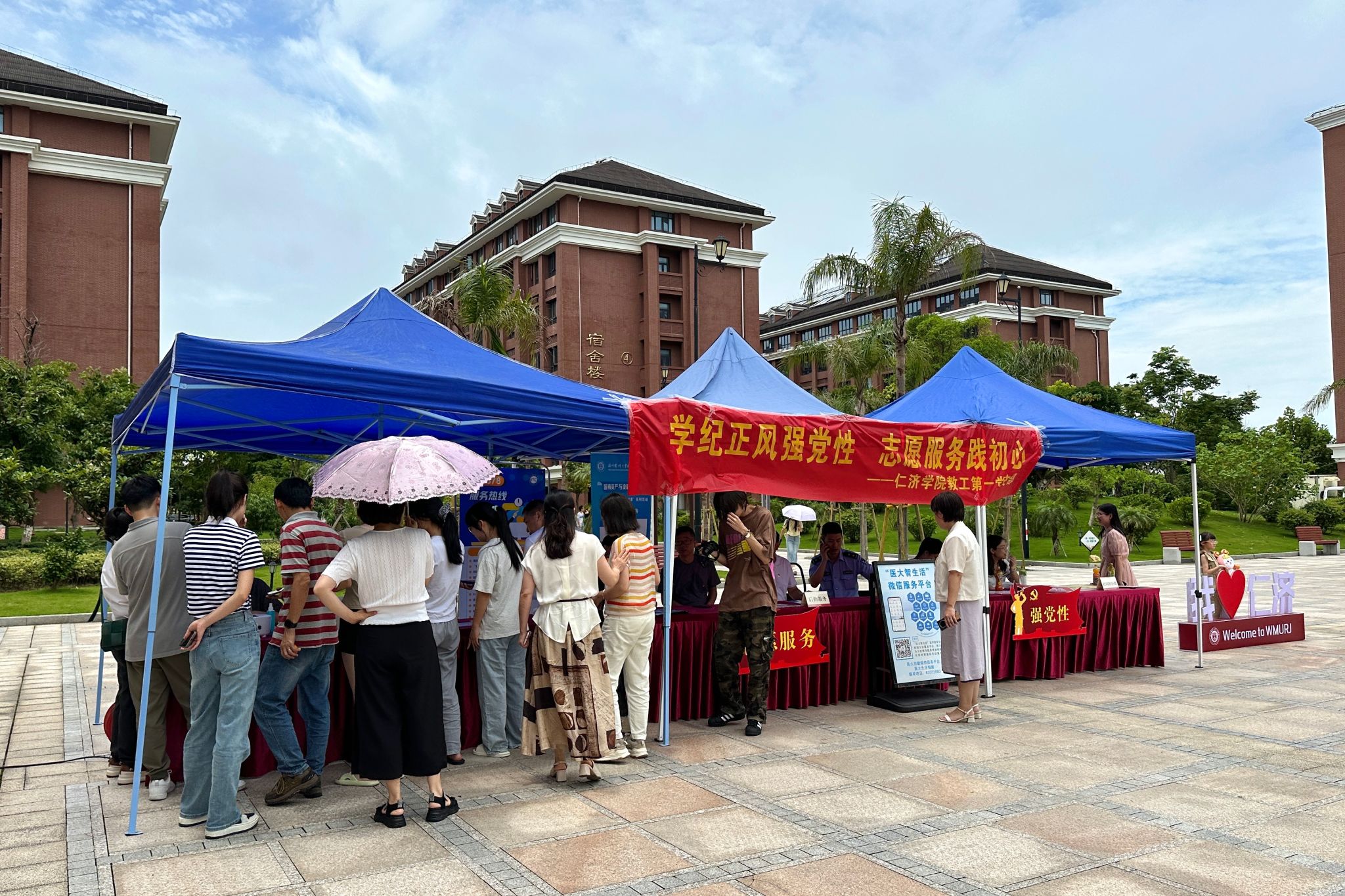 此次志愿服务活动开展多项志愿服务,支部联合洞头区公安局开展反诈骗宣传活动,向过往的同学发放反诈骗宣传册。支部党员们主动与来到摊前了解详情的同学进行有趣的解读,希望通过加大反诈宣传,维护校园和谐稳定。活动期间,路过的老师前来咨询办公室空调不工作的问题,支部党员帮忙联系后勤维修人员,并贴心展示后勤智生活的功能。洞头区移动公司提供的贴膜服务摊前围满了想要给手机换上新皮肤的师生。“我爱仁济”的摄影牌前,同学们开心地摆姿势,摄影师咔咔地拍下一张张美丽的照片。