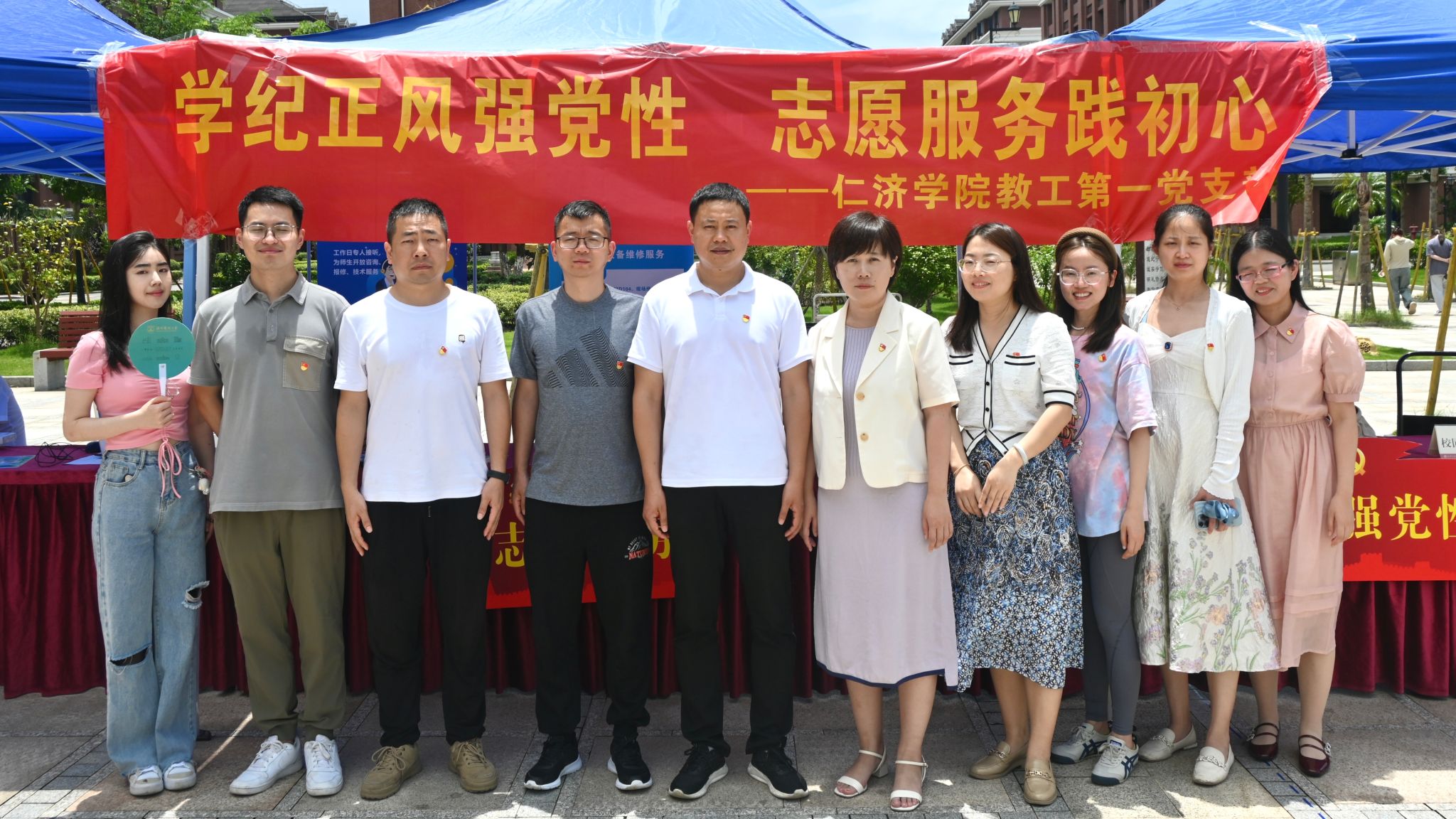 为切实增强党员风险意识,践行服务宗旨,弘扬志愿精神,加强服务型党组织建设,充分发挥党员的先锋模范作用,6月25日,黄瓜视频 教工第一党支部在滨海校区汇源楼门口开展“学纪正风强党性 志愿服务践初心”主题党日活动暨志愿服务活动。